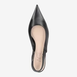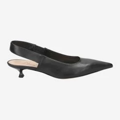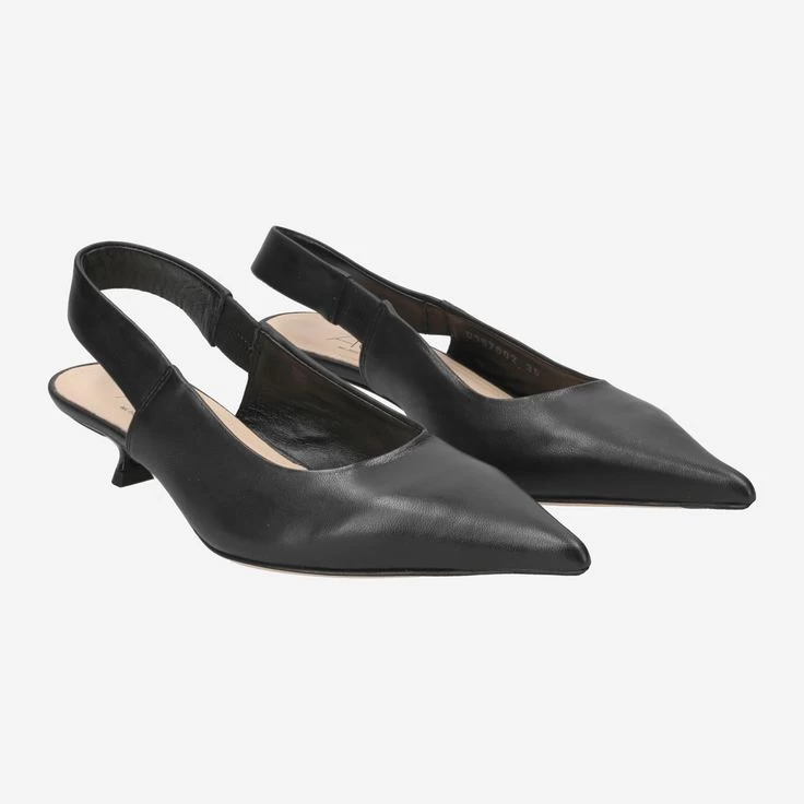 | Merkmale | Queenie-Absatz, Ledersohle mit gummierter Spitze und Gummiabsatz, Stretcheinsatz, spitzes Design, Slingpumps, italienische Handarbeit |