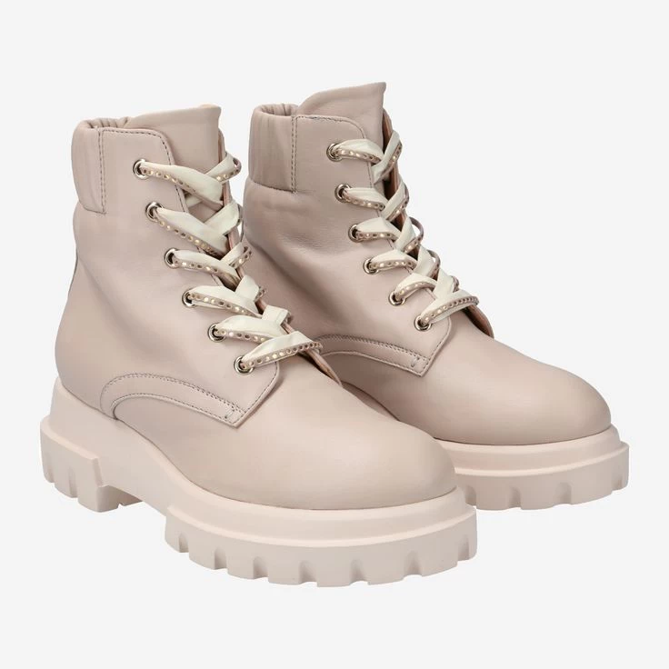 Monochrome Looks sind DAS HIGHLIGHT der Laufstege in dieser Saison! Die Kombination aus ähnlichen Farbnuancen (Weiß, Beige, Nude, Creme, Rosé..) verleiht Ihrem Outfit eine zeitlose, sehr edle Eleganz. AGL stellt Ihnen mit MAXIME einen beigen Glattleder-Boot im Biker-Stil vor. Die doppelten Schnürsenkel begeistern durch edle Haptik und feinsten, goldfarbenen Mikronieten. Der Stretchbereich am Schaft bringt eine sportive Note mit, und macht diesen Boot zum lässigen „It-piece“ der neuen AGL Kollektion.