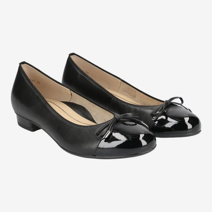 Mit „Bari“ von ara genießen Sie die verspielte Leichtigkeit des Ballerinas, kombiniert durch eine edel schimmernde Kappe aus schwarzem Lackleder. Die HighSOft Technologie schenkt Ihnen einen weichen, dämpfenden Auftritt.