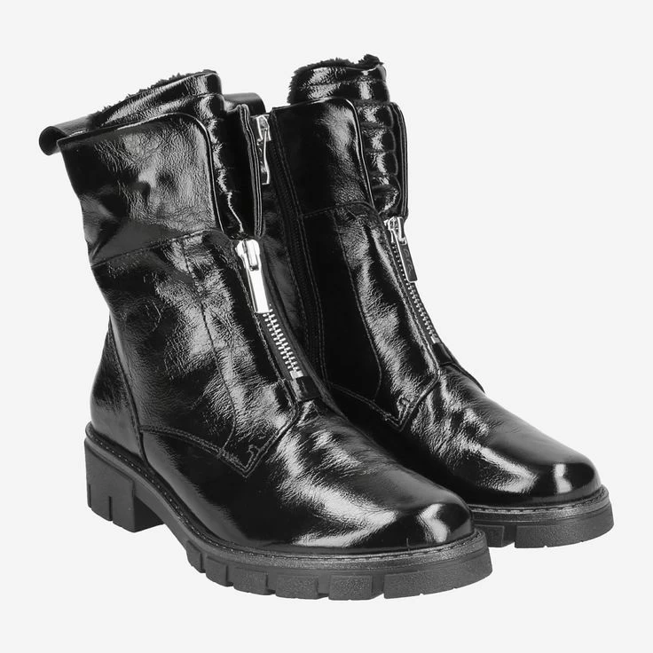 Dieser kuschelig warm gefütterte Winterboot „Dover“ hält Ihre Füße warm und überzeugt durch sein außergewöhnliches Design. Die gesteppte Zunge rundet den Look des exklusiven, schwarzen Lackleders extravagant ab. Der mittige Reißverschluss ist das dekorative Highlight, und wird durch einen seitlichen Reißverschluss praktisch ergänzt. Die spezielle HighSoft Funktion von ara ist durch die schaumbasierte Sohle ergänzt, und schenkt Ihnen ein weiches und komfortables Trageerlebnis.