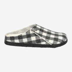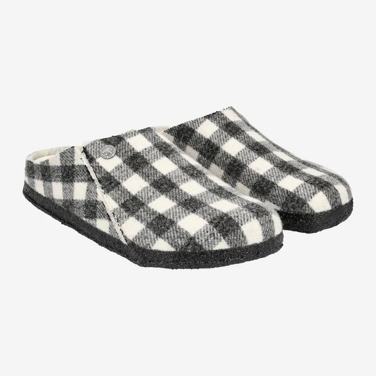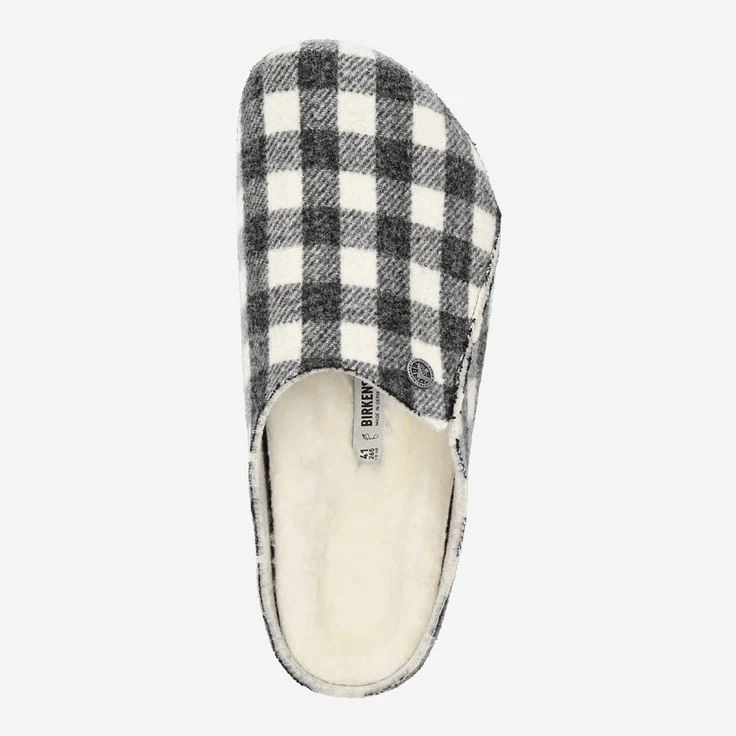 Mit dieser gefütterten Pantolette gehören kalte Füße in der Wohnung der Vergangenheit an! „Zermatt Sherling“ von Birkenstock verwöhnt Sie durch ein flexibles Filzmaterial aus pflegeleichtem Polyacryl, das durch ein Innenfutter aus Wollmischgewebe (70% Wolle & 30% Polyester) ergänzt ist. In weiß-grauem, kariertem Design ist Ihr Home-Look einfach perfekt!