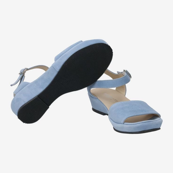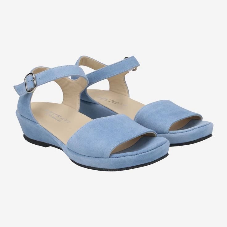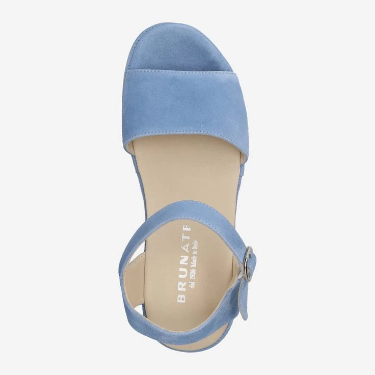 Eine Farbe wie der Sommerhimmel! Diese neue Luxus-Sandalette aus italienischer Handfertigung weckt zauberhafte Erinnerungen in uns. Brunate verwendet bei diesem exklusiven Modell samtig-weiches Veloursleder . Ein dezenter Keilabsatz rundet das Design sportlich ab. Kombinieren Sie dieses Sahnestück zu einem sommerlichen Kleid, zu Ihren Lieblingsjeans oder dem Business-Outfit.