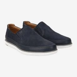 Besonders lässig ist bei dem Modell BRATTON STEP die Kombination aus einem klassischen Slipper und der frischen Note eines Freizeitschuhs! Die weiße Gummisohle bringt sportlichen Flair ins Bild, und bildet zudem einen richtig coolen Kontrast zu dem dunkelblauen Leder. Seitliche Stretcheinsätze schenken Ihnen angenehme Flexibilität beim Laufen. Dieses Modell können Sie sowohl im Büro, als auch in Ihrer Freizeit nutzen!