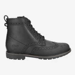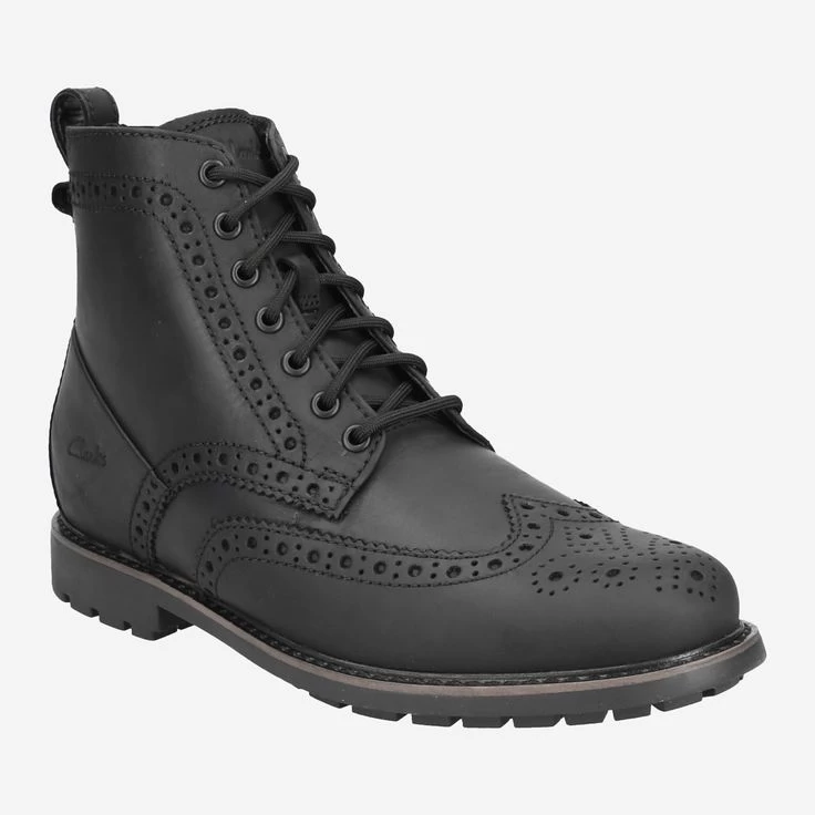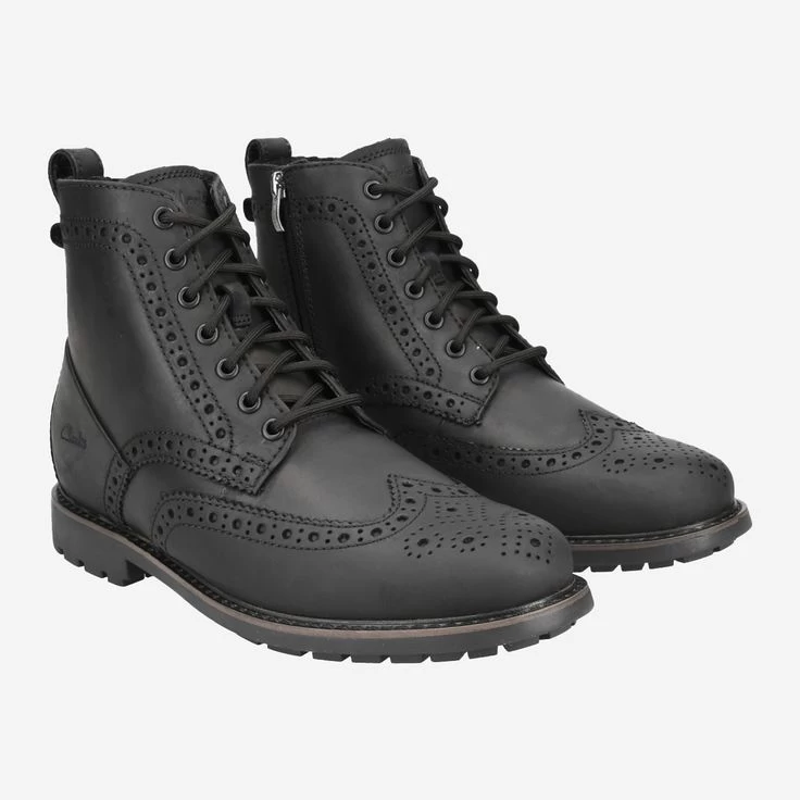 Lust auf eine kleine Facherkursion? Clarks greift gerne auf traditionelle Techniken und Schnitte zurück, denn sie stammen aus langjähriger Machart. Dieser schwarze Schnürboot ist aus Glattleder gefertigt, das einen lässigen Vintage-Look mitbringt. Die Brogue- und Lyralochungen veredeln den Look gekonnt. Diese Stanzungen wurden einst von Hirten in Schottland und Irland angewandt. Sie dienten dem Wasserabfluss bei sumpfigen Böden und ermöglichten eine schnellere Trocknung. Heutzutage dienen Sie als Zier – mit einer schönen Tradition!