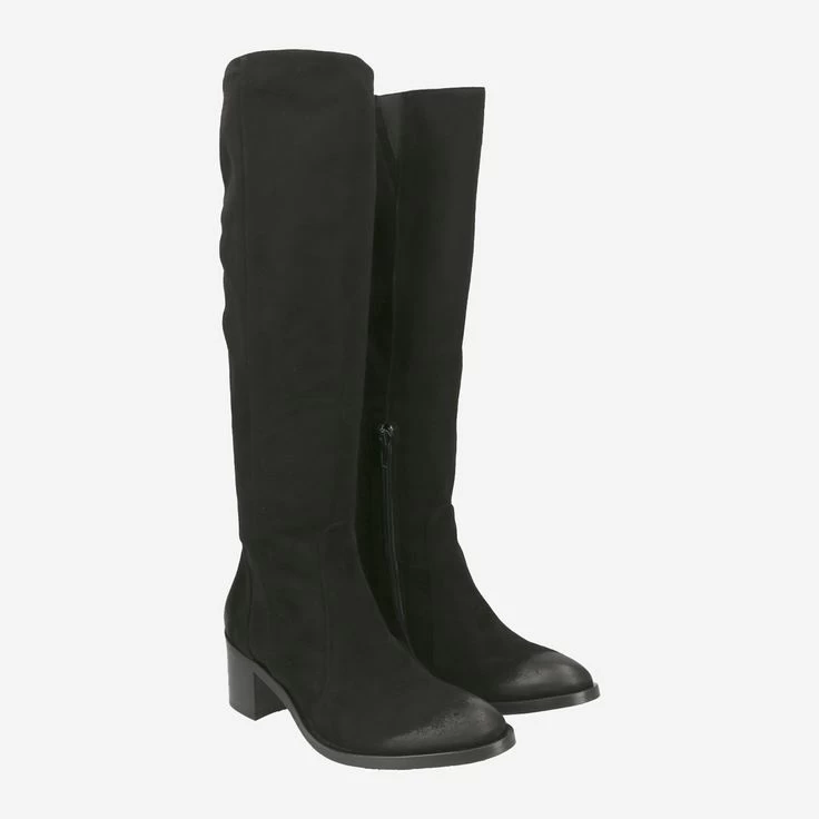 Dieser Stiefel von Donna Carolina verwandelt Ihren Herbstlook in ein rundum stimmiges Gesamtkonzept. Das anschmiegsame Veloursleder kleidet ihr Bein geschmeidig und stilvoll in klassischem Schwarz, den Sie ideal zum Jeanslook, zu Kleidern und vor allem zu Strick kombinieren können! Der Vintage-Look des Leders macht diesen Look besonders lebendig und charakteristisch.