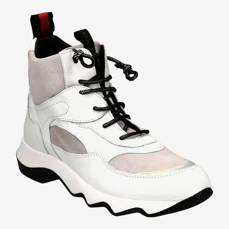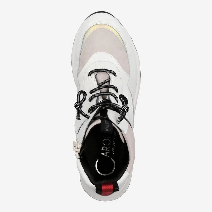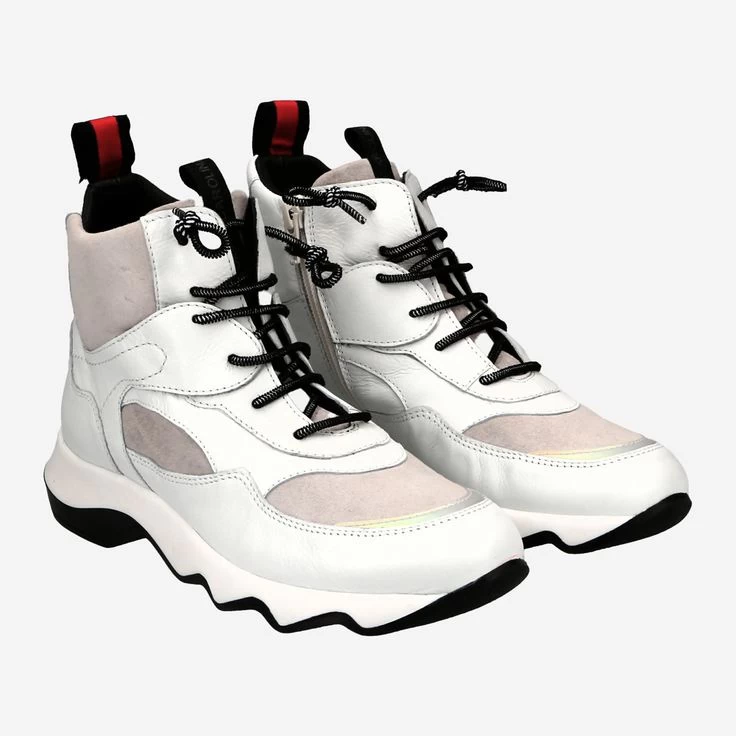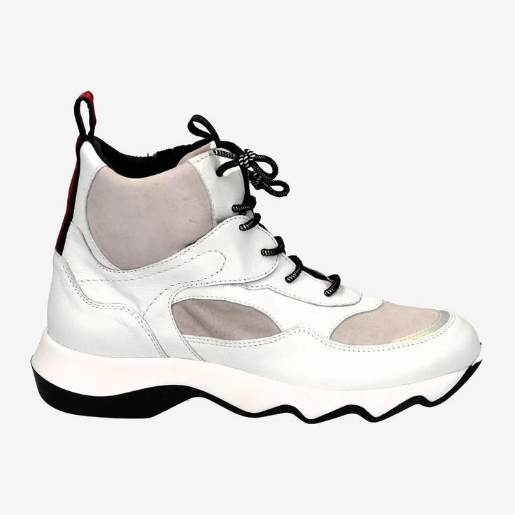 An diesem spannenden, weißen High Sneaker gibt es jede Menge zu entdecken! Denn Donna Carolina hat sich hier kreativ richtig genial ausgetobt: Die wellenförmige Sohle wird durch eine außergewöhnlichen, dekorativen Schnürung ergänzt. Der Einstieg erfolgt praktisch und einfach über den Reißverschluss. Und auch hier finden Sie bereits das nächste Highlight: Die Einstiegsschlaufe ist über den Fersenbereich erweitert, und setzt durch Ihre rote Farbe ein tolles Signal, um auf dieses Detail hinzuweisen. Sind Sie nun auch neugierig geworden?