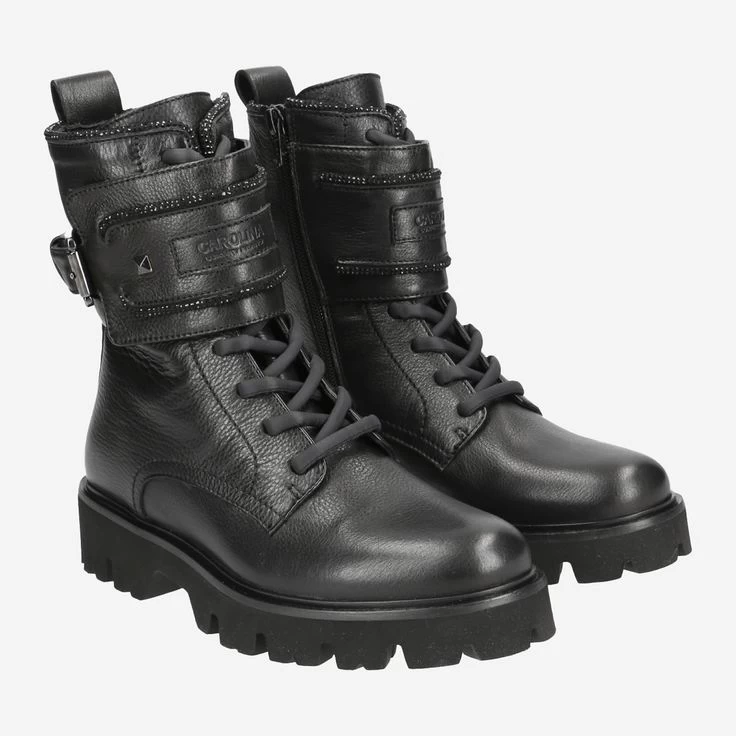 Setzen Sie ein Fashion-Statement! Diese italienischen Designer-Boots aus dem Hause Donna Carolina sind durch den seitlichen Reißverschluss praktisch angezogen, und über einen zusätzlichen Riemen rockig in Szene gesetzt. Die effektvolle Glitzerpaspel entlang der Saumkanten bringt einen subtilen Hauch Glamour in das Gesamtbild. Die Logoapplikation mit Prägung und Zierniete rundet Ihren Biker-Look edel und markentreu ab!