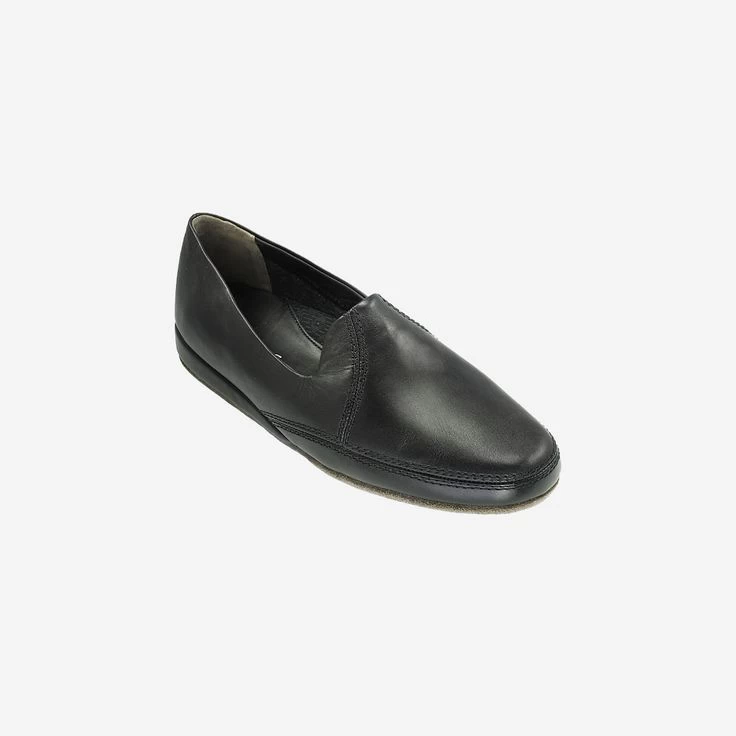 Schwarze Herren Sommerhausschuhe von Fortuna aus Glattleder. Mit Baumwollfutter und Nappacalf, einer Ledersohle sowie mit modischen Ziernähten überzeugen die Hausschuhe mit Komfort und Design, Reduziertes Einzelpaar!