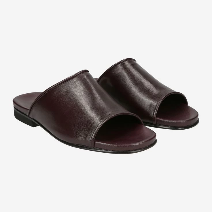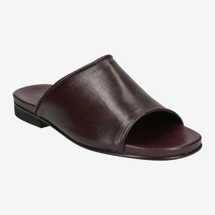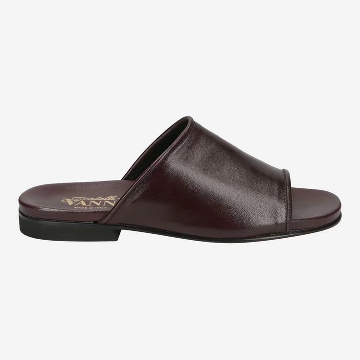 Bordeauxfarbene Herren Pantoletten aus weichem Glattleder von Fratelli Vanni. Die Lederdecksohle und die hochwertige Ledersohle sichern einen hohen Komfort und ermöglichen einen sicheren Auftritt.