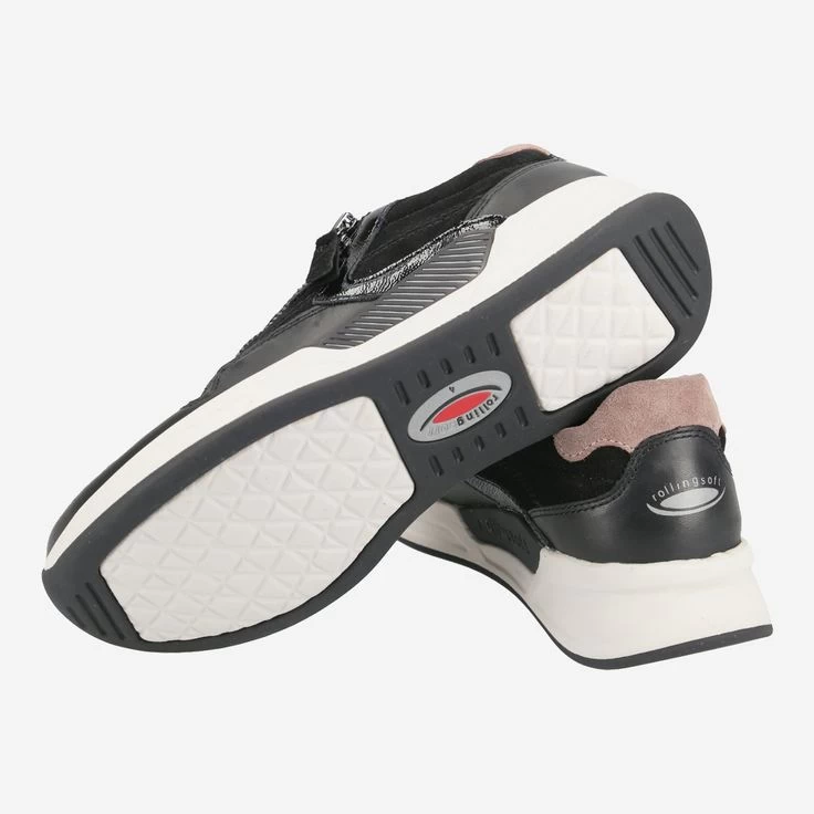 | Merkmale | Wechselfußbett, für Einlagen geeignet, Keilabsatz, Lederapplikation, „ROLLINGSOFT“: innovative, halbrunde Sohle für angenehmes Abrollen |