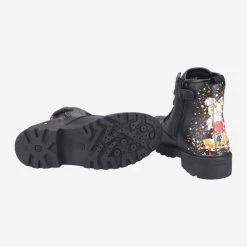 | Merkmale | Wechselfußbett, für Einlagen geeignet, Reißverschluss, Metallverschluss, Logoprägung, Einstiegschlaufe, ©Disney-Kollektion mit Art-Edition „Mickey Mouse©“ Motiv, cooler Biker-Boots-Style, atmungsaktiv |