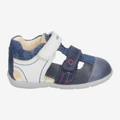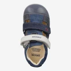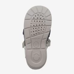 An warmen Tagen schützen Sie die empfindlichen Füße Ihres Kindes optimal mit dieser blauen Sandalette „KAYTAN“ von Geox. Die atmungsaktive Konstruktion ist durch eine Innensohle aus chromfrei gegerbtem Leder ergänzt. Zwei Klettriemen ermöglichen die individuelle Anpassung. Damit kann Ihr Schatz fleißig und neugierig auf Erkundungstour gehen!