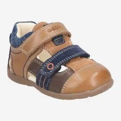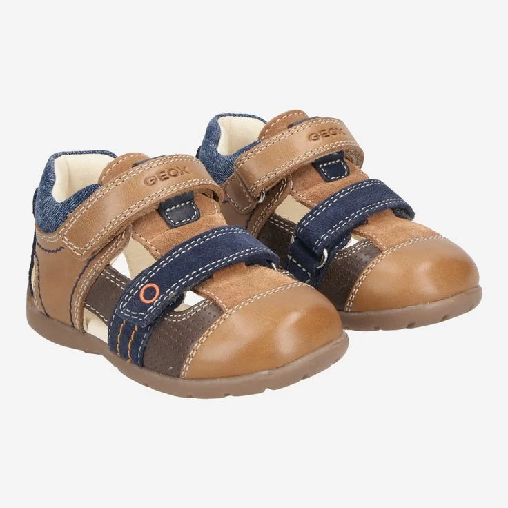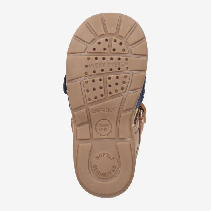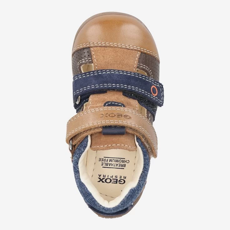 An warmen Tagen schützen Sie die empfindlichen Füße Ihres Kindes optimal mit „KAYTAN“ von Geox. Die atmungsaktive Konstruktion ist durch eine Innensohle aus chromfrei gegerbtem Leder ergänzt. Zwei braune Klettriemen ermöglichen die individuelle Anpassung. Damit kann Ihr Schatz fleißig und neugierig auf Erkundungstour gehen!, Reduziertes Einzelpaar!