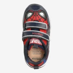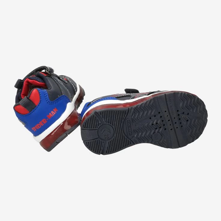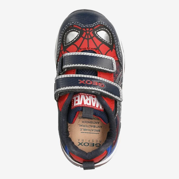 | Merkmale | Wechselfußbett, für Einlagen geeignet / individuell anpassbar, Klettverschlüsse, Logoapplikation, Logoprägungen, Einstiegschlaufe, Ziernähte, Kontrastnähte, atmungsaktiv, mit Blinkfunktion in der Sohle, exklusive Marvel® Kollektion mit ©Spiderman-Applikationen in 3D |