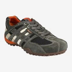 Dank ihrer strapazierfähigen Materialien und der präzisen Verarbeitung lassen sich diese Sneaker von GEOX auf fast jedem Terrain nutzen: Egal, ob im Alltag oder auch bei abenteuerlichen Ausflügen in die Natur, diese Schuhe machen alles mit! Das Obermaterial ist aus einer attraktiven Kombination aus grauem Veloursleder bzw. Textil gefertigt und mit dekorativen Kontrastnähten versehen. Für maximalen Komfort sorgen die herausnehmbare Decksohle sowie auch das atmungsaktive Innenfutter, welche beide aus weichem Textil gefertigt sind. Trittsicherheit auf jedem Untergrund garantiert darüber hinaus die Profilsohle aus rutschfestem Gummi.