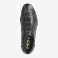 Diese Herrenslipper von Geox sind perfekt für die Freizeit. Aus hochwertigem Glattleder gefertigt und elegant aber dennoch sportlich geschnitten lässt sich dieser Schuh auf viele Arten kombinieren. Während das Innenfutter für aus atmungsaktivem Textil gefertigt ist, besteht die Decksohle aus Leder & Textil. Zudem sind diese Herrenslipper mit einer leichten, wasserabweisenden Sohle aus Gummi versehen. Weiterhin sorgt der Gummizug für ein schnelles An- und Ausziehen.