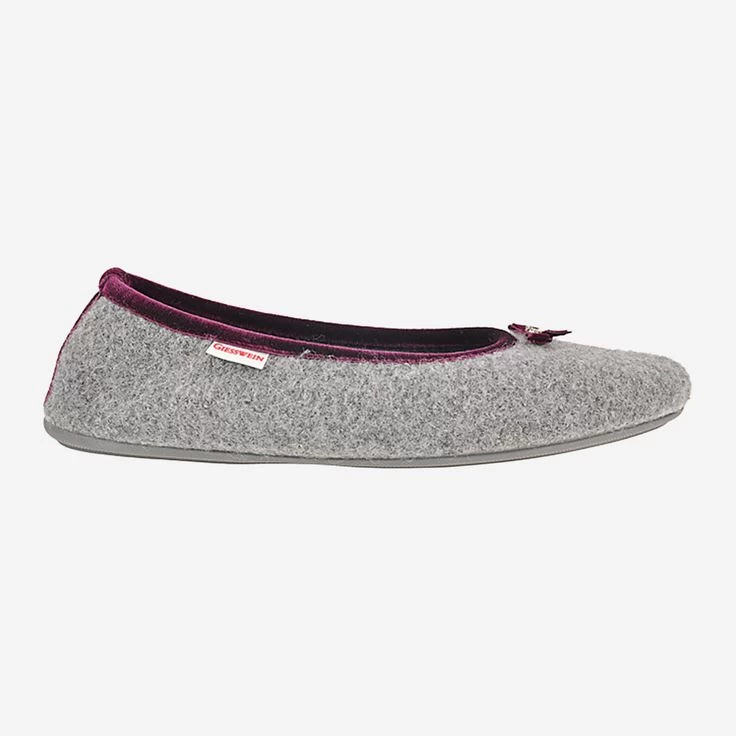 Schiefer / Violettfarbene Hausschuhe von Giesswein aus weichem Textil (100% Schurwolle), Decksohle Textil (100% Schurwolle), Gummisohle.