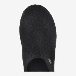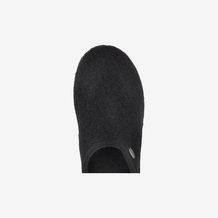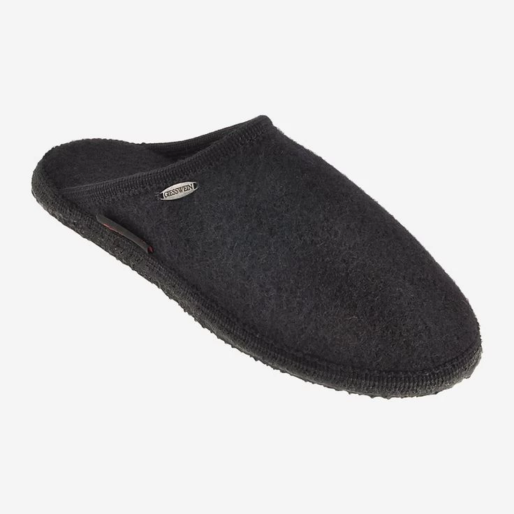 Schwarze Hausschuhe von Giesswein. Das Obermaterial besteht aus 100% Schurwolle. Das Innenfutter sowie die Decksohle bestehen ebenfalls aus Schurwolle. Eine rutschfeste Naturkautschuk-Sohle sorgt für einen guten Tragekomfort. Waschbar bei 30 Grad, ohne Weichspüler und Trockner. Für Wechselfußbett geeignet.