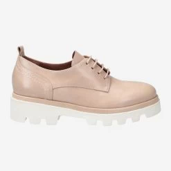 Genießen Sie die Leichtigkeit des Augenblicks! Dieser Schnürschuh begleitet Sie dabei, und passt sich dem Motto optimal an. Die ultra-leichte Sohle schenkt Ihnen ein angenehmes Laufgefühl, und ist durch den pudrigen Farbton des Obermaterials zauberhaft in Szene gesetzt. Das beige Glattleder veredelt die spanische Manufaktur Homers durch helle Kontrastnähte, die das Cremeweiß der Sohle aufgreifen. Einfach stimmig – bis aufs Detail.