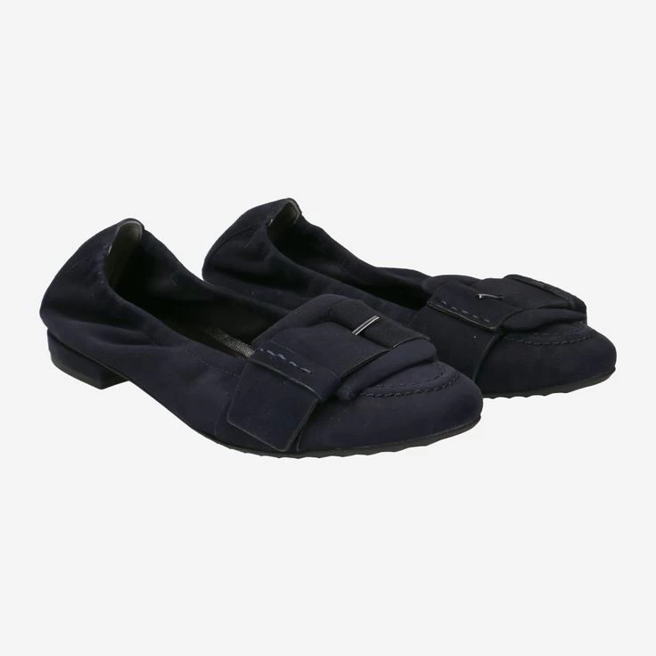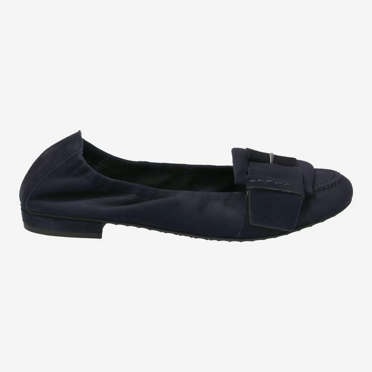 Große Schnallen sind DAS Must-have der Saison! Kennel & Schmenger greifen den Trend gekonnt auf, und kombinieren eine große Zierschnalle durch ein schlichtes, klassisches Design. Diese Ballerinas passen sich durch ihren rundum Gummizug anschmiegsam an Ihren Fuß an. Sie genießen butterweiches, dunkelblaues Veloursleder, das sowohl im Business-Look, als auch zu maritimen Outfits perfekt harmoniert!