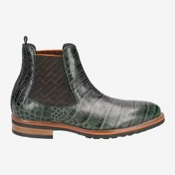 Hier trifft spannender Animal-Style auf urbanen Business-Look! Die italienische Manufaktur Lorenzi ist bekannt für Ihre außergewöhnlichen Designs. In meisterhafter Präzision fertigt sie diesen einzigartigen Chelsea-Boot. Hierbei dominiert das grüne Glattleder durch die geprägte Struktur. Die durchgenähte Sohle ist über eine leuchtend orange Kontrastleiste betont. Genießen Sie damit Ihren glanzvollen Auftritt!