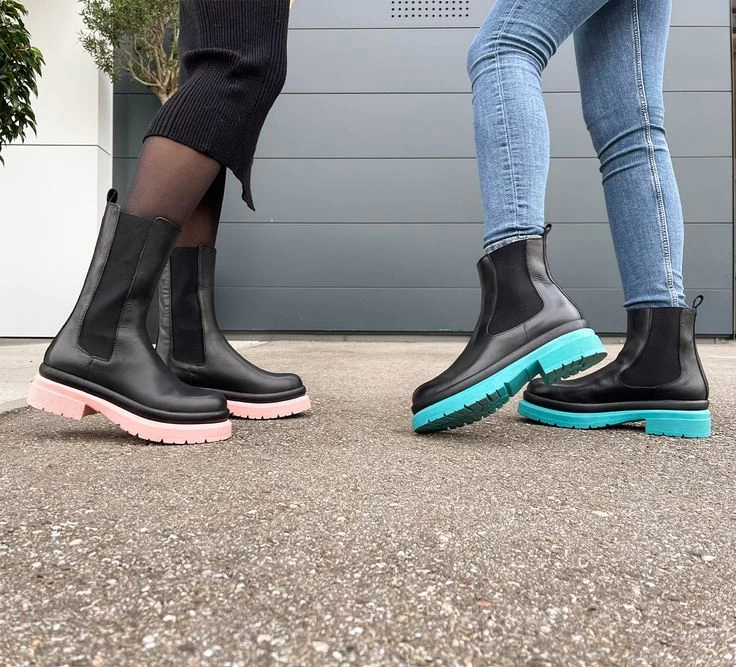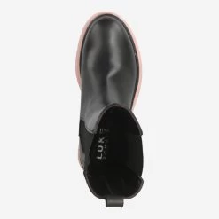 Mit „Eden 4“ kombiniert Schuhe Lüke den klassischen Long-Chelsea-Boot mit angesagtem Plateau. Abgerundet wird der extravagante Look durch die rosa Sohle, die als absoluter Eye-catcher dient! Das schwarze Glattleder ist von außergewöhnlicher Qualität, die seitlichen Stretcheinsätze schenken Ihnen hohen Komfort und Flexibilität. Damit zeigen Sie Mut zur Farbe, Sinn für Design und Liebe zu Fashion!