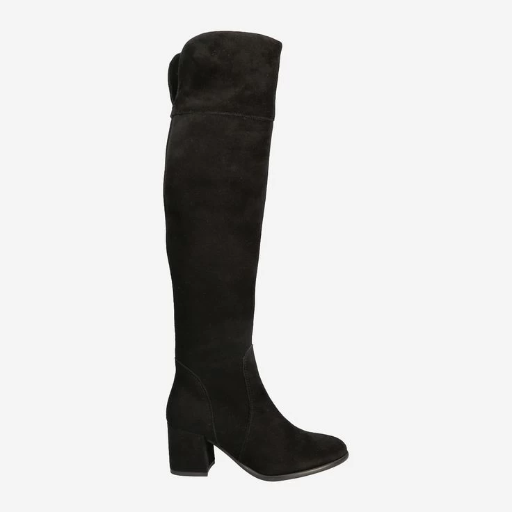 Stiefel mit überlangem Schaft sind nicht mehr aus der Mode wegzudenken und sollten bei stylischen Outfits im Winter nicht fehlen. Man kann sie perfekt mit Kleider, Jeans und überlangen Pullis kombinieren. Wichtig ist es, dass man so wenig Haut wie möglich zeigt, damit die Overknees perfekt in Szene gesetzt werden und dabei elegant aussehen. Das weiche Veloursleder schmiegt sich sanft an die Beine an. Der Blockabsatz unterstützt einen angenehmen Auftritt.