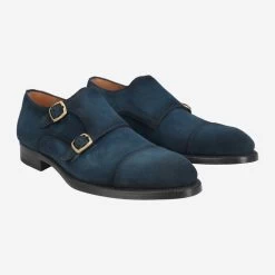 | Merkmale | Ziernähte, Durchgenähte Sohle, Doppelmonk mit goldfarbenen Metallschnallen, atmungsaktiv, handgefärbtes Finish |