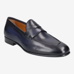 Luxus pur! Handarbeit, edles Leder, ein individuelles Finish – dieser blaue Penny-Loafer von Magnanni ist ein absolutes Sahnestück! Wenn Sie noch zu den Menschen gehören, die die Liebe für handgearbeitete Schuhe in sich tragen, dann ist dieser Business-Schuh definitiv ein Kandidat zum verlieben!