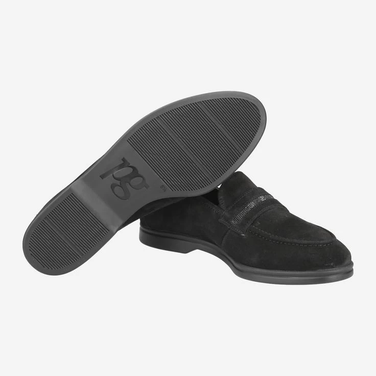 Klassisch im Look und mit einer edlen Note begeistern diese SUPER SOFT Slipper von Paul Green. Dieses beliebte Paar aus schwarzem Veloursleder ist ausgesprochen leicht und unkompliziert in der Handhabung. Die edlen Schmucksteinchen am Ristbereich sind ein dekoratives Highlight, das dem Modell eine trendige Note verleiht. Dank der super soften Verarbeitung und der bequemen Laufsohle sorgen die Loafer für unschlagbaren Tragekomfort. Mit diesen Schuhen begeistern Sie in vielerlei Hinsicht!