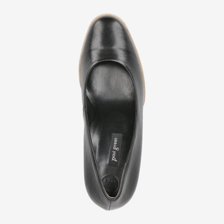 Genießen Sie feminines Design, individuellen Stil und traumhaften Komfort! Dieser schwarze Pumps von Paul Green begeistert durch präzise Verarbeitung, einen eleganten, hohen Absatz in Komfortbreite, und durch sein atmungsaktives Innenfutter aus Leder. Die High Soft Technologie polstert Ihren Fersenbereich ideal, und das leichte Plateau mit kontrastierender Leiste gleicht den Absatz auf bequeme Höhe aus. Für Ihren Business-Look genau das Richtige!
