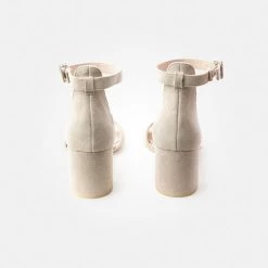 Zeigen Sie Stil mit diesen eleganten Sandaletten aus hellgrauem Samtleder. Das cleane Design wird durch den schönen Blockabsatz stilvoll unterbrochen, wodurch eine extravagante Silhouette entsteht. Der zarte Fesselriemen mit verstellbarer Schließe sorgt für perfekten Komfort und überzeugt dank des Druckknopfes für schnelles An- und Ausziehen. Mit diesem komfortablen Paar setzen Sie in Ihren Outfits einen coolen Akzent.