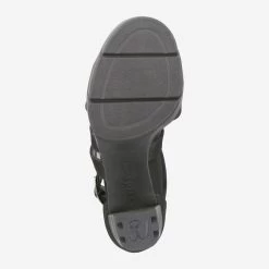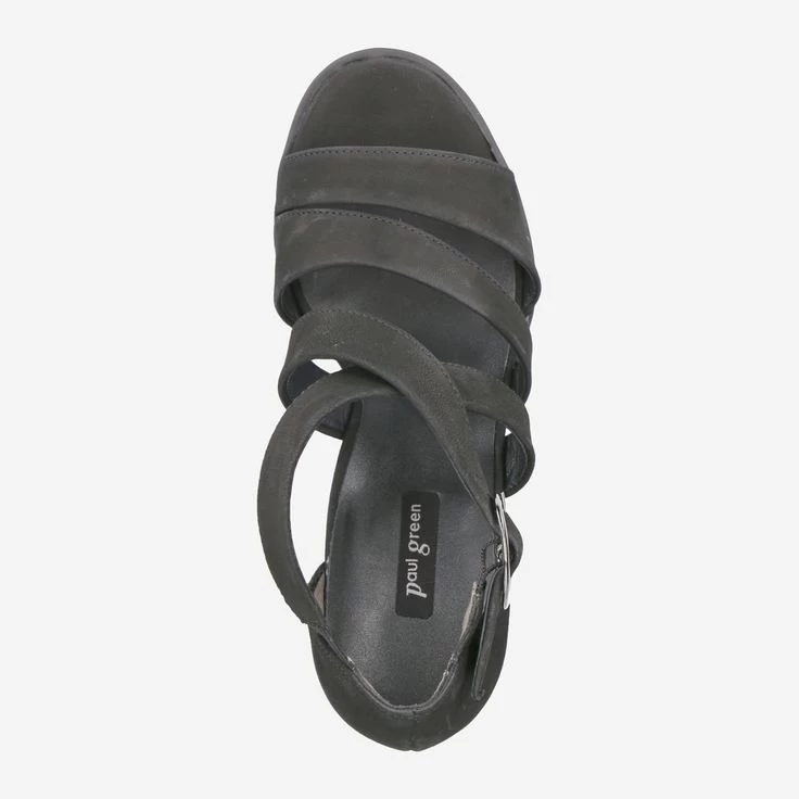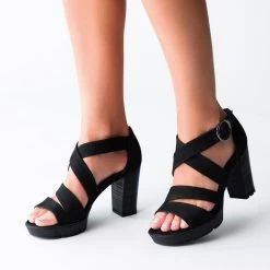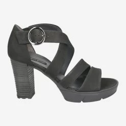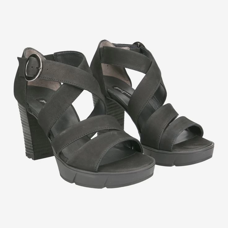 | Merkmale | Metallverschluss, Stretcheinsatz am Riemen, Blockabsatz, Plateausohle vorn |