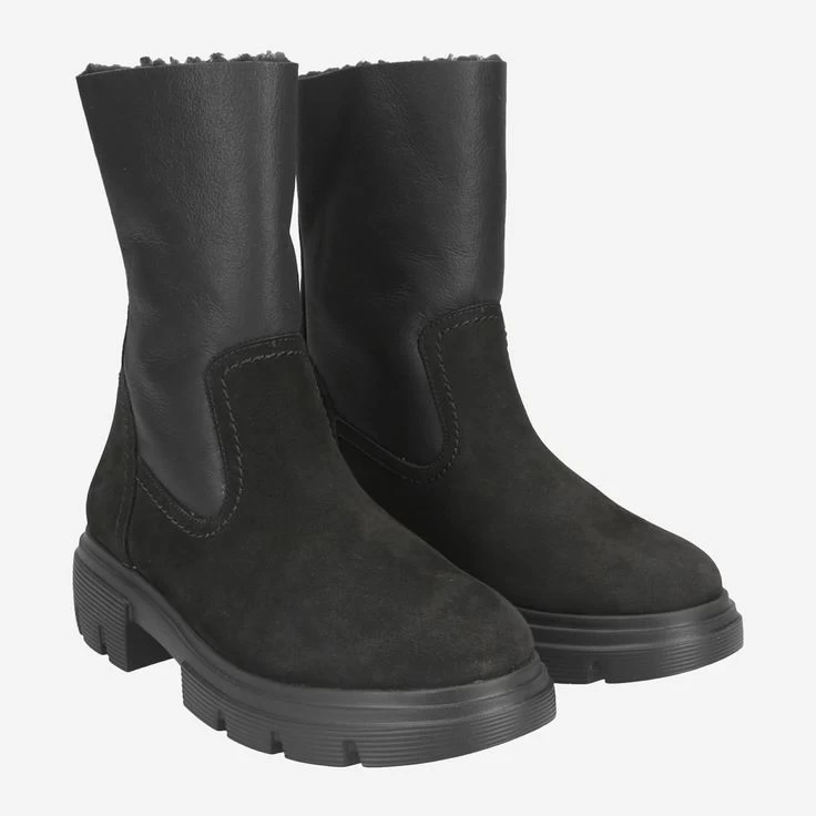 | Merkmale | Reißverschluss, Blockabsatz, Plateauabsatz, Lederapplikation am Reißverschluss, soft-anschmiegsamer Schaftbereich aus gewachsenem Schaffell (Merino), atmungsaktiv, Warmfutter |