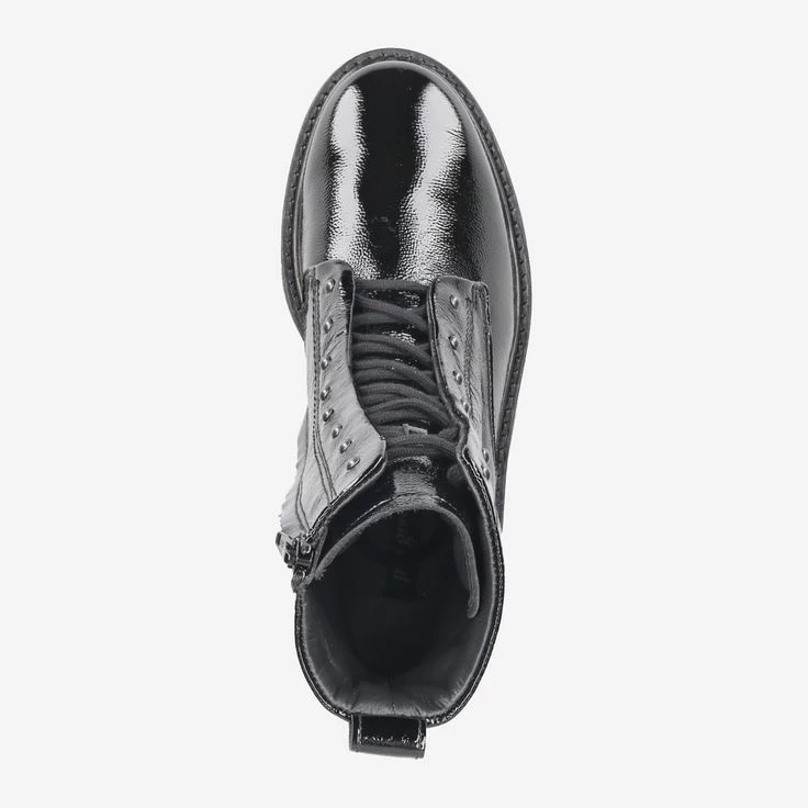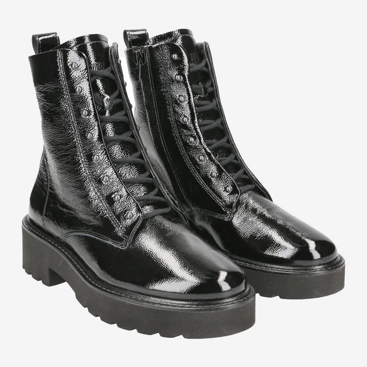 Fashion macht Spaß! Und mit diesem aufregenden Boots von Paul Green gelingt Ihr Fashion-Update im Handumdrehen! Die raffinierte Schnürung sticht absolut ins Auge. Sie verläuft innenliegend! Die matten Metallnieten an der äußeren Schnürleiste ergänzen das schwarze Leder in Knautschlack-Optik perfekt! Paul Green hat hier die klassische Schnürstiefelette wunderbar neu interpretiert. Der Reißverschluss ermöglicht ein einfaches Anziehen, damit Sie Ihre neuen Sahnestücke umgehend ausführen können!