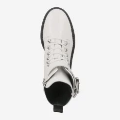 Hier schlagen Frauenherzen höher! Paul Green begeistert alle Fashion-Fans mit dieser neuen Stiefelette! Das flexible Leder in Knautschlack-Optik passt sich Ihrem Fuß ideal an, und setzt ein Highlight durch das gebrochene Weiß! Die beeindruckende Schnürung ist durch einen verstellbaren Riemen mit Metallschnalle ergänzt, um Ihnen perfekte Anpassung zu gewähren. Danach können Sie ihn ganz leicht über den Reißverschluss öffnen. Das Innenfutter aus Leder und luftigem Frottee schenkt Ihnen ein dauerhaft angenehmes Tragegefühl!