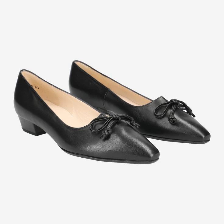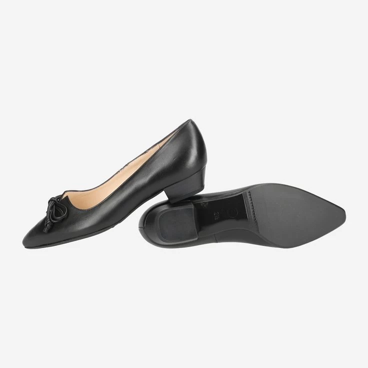 Verwandeln auch Sie sich in eine Stilikone! Ihr Outfit erhält durch LIZZY eine klassische Note, einen eleganten Charme sowie eine außergewöhnliche Klarheit. Erzeugt wird der edle Charakter durch feinstes Glattleder in tiefem Schwarz. Eine Einkerbung in der Mitte des Schuhs dient als Blickfang, der durch die Schleifenapplikation auf verspielte Weise ergänzt ist. Der Absatz ist abgeschrägt und klar definiert. Damit legen Sie sowohl im Etuikleid, als auch in Ihrer Lieblingshose einen klassisch-stilvollen Auftritt hin!