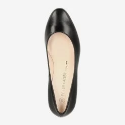 Schwarze Damen-Pumps von Peter Kaiser. Das Obermaterial besteht aus Glattleder, das Innenfutter ist mit Leder ausgekleidet. Die Pumps besitzen eine Lederdecksohle sowie eine Gummisohle. Der Absatz ist ca. 55mm hoch.