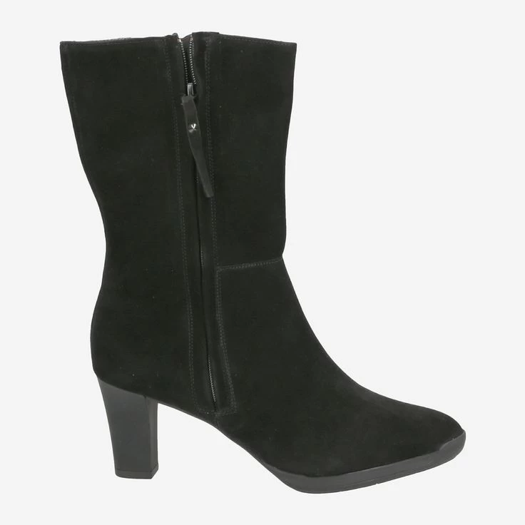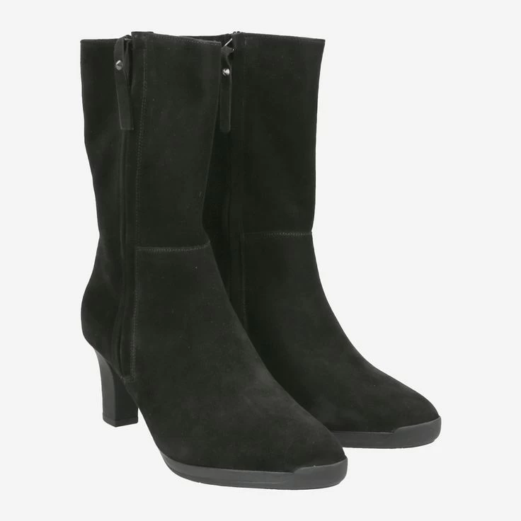 Höchsten Tragekomfort bei Anlässen aller Art genießen stilbewusste Damen mit diesen Stiefeln von Peter Kaiser. Aus samtigem schwarzen Veloursleder gefertigt und innen weich mit Leder ausgekleidet versprechen sie ein hervorragendes Tragegefühl. Weiterhin sorgen die Lederdecksohle sowie auch die Außensohle aus Gummi, die mit einem 70 mm hohen Absatz ausgestattet ist, für Stabilität.