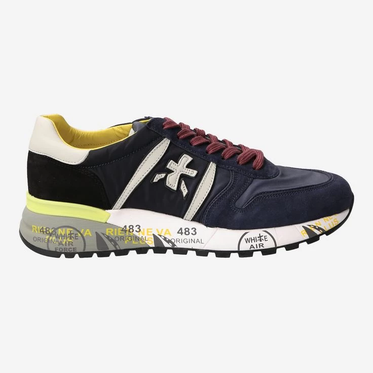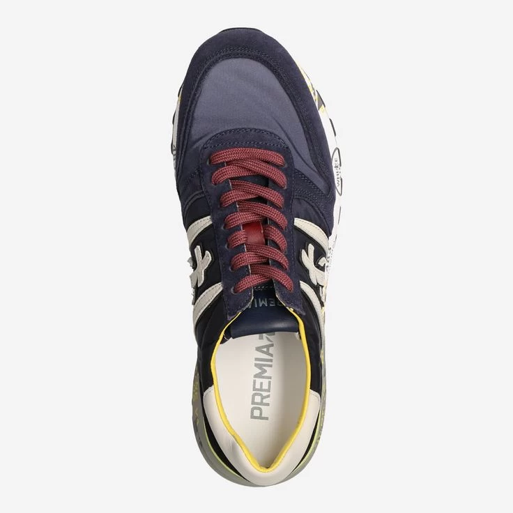 Präsentieren Sie ruhig stolz diese neuen, exklusiven Sneaker der Edelmarke Premiata! Der sportliche Look ist durch eine auffällige Farbkombination von Blau, Rot, Weiß und Gelb dynamisch und Sie können Ihn richtig lässig kombinieren. Der Mix aus Textil und Veloursleder sorgt bei diesem Modell „Lander“ für hohen Tragekomfort durch optimale Elastizität. Die auffälligen Details, Aufnäher, und Drucke sind kennzeichnend für den exklusiven Style von Premiata.