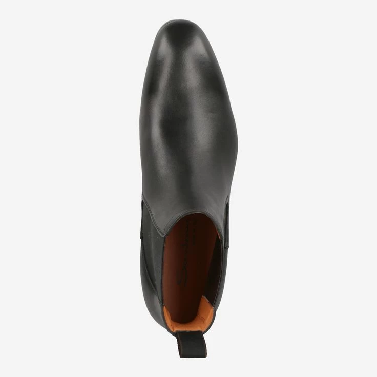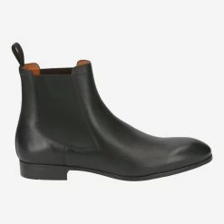 Mit diesem Schuh gönnen Sie sich Luxus, Wertigkeit und höchste Sorgfalt. Ein Santoni Schuh ist mehr als ein Schuh: Er ist ein Sinnbild für Handwerkskunst, ein Statement für Mode und ein Symbol für Anspruch und Lebensqualität. Er ist etwas Besonderes, und entsprechend pflegt und trägt man(n) ihn. Das schwarze Glattleder ist edel, klassisch und elegant. Die rahmengenähten Chelsea-Boots sind durch die stilechten, seitlichen Stretcheinsätze ergänzt. Ein Schuh, der Generationen überdauert.