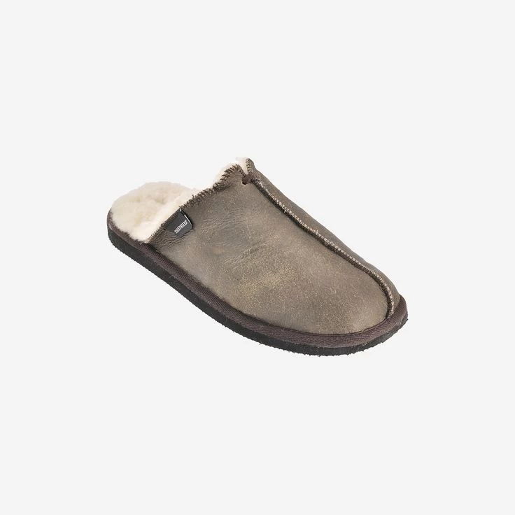 Diese braunen, aus 100% Schafwolle und Schafleder hergestellten Pantoffeln von Shepherd stehen für Natürlichkeit und Qualität.
