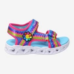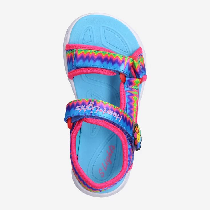Wir wissen alle, am Ende des Regenbogens wartet eine Schatztruhe. Und dort ist vielleicht neben Gold auch der bunt-verspielte HEART LIGHTS Schuh von Skechers zu finden. Um Ihn besser zu sehen, bietet er eine coole Blinkfunktion entlang der Herzen an der Sohle. Aber auch die verliebt-regenbogenfarbige Blume an der Seite lässt Herzen höher schlagen. Jedenfalls eine ideale Sandale für wundervolle Sommer-Tage voller wunderbarer Entdeckungen und Abenteuer. Und wissen Sie was, wir haben diesen Schuh auch im Angebot, Sie müssen also nicht auf den nächsten Regenbogen warten!