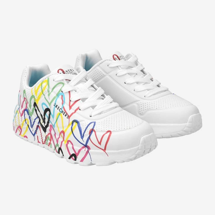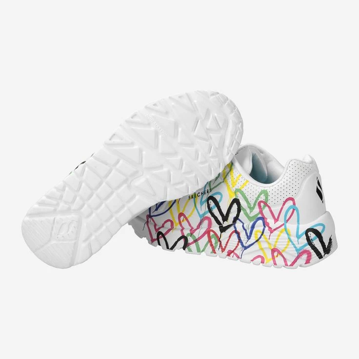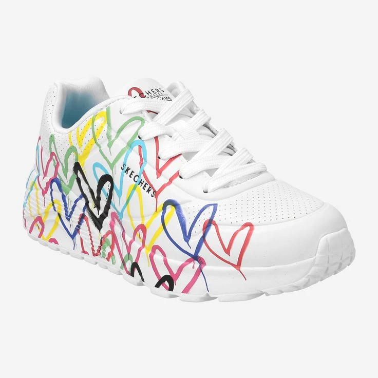 Jeder Schritt lässt bunte Herzchen folgen! Uno Lite Spread The Love zeigt viele farbenfrohe Herzchen von Street Artist James Goldcrown – Das belebt die nächste Stadttour und lässt auch die Herzen von Fashion Fans höher schlagen. Damit jeder Schritt beherzt vorwärts führt, sorgt eine Memory-Foam® Innensohle dafür, dass sich der Schuh der Fußform anpasst. Dem Erkunden neuer City-Styles steht mit diesem Sneaker jedenfalls nix mehr im Weg: Ein Skechers zum Liebhaben!