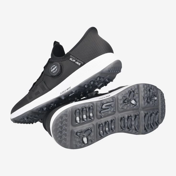 Erobern Sie den Golfplatz im stylischen Skechers Hands Free Slip-in™ Golfschuh in Schwarz! Der Twist Fit™-Drehverschluss sorgt für schnelle Schnürung und perfekten Halt. Die Skechers Arch Fit®-Innensohle und das Wechselfußbett bieten ein Höchstmaß an Komfort und passen sich perfekt an Ihre Einlagen an. Logoapplikationen und das Skechers GO GOLF® Logo machen diesen Schuh zum Hingucker. Heel Pillow™ sorgt für extra Stabilität bei jedem Schritt. Der gepolsterte Schaft schützt Ihren Knöchel und die GRIPFLEX-Laufsohle gibt jederzeit optimalen Halt. 100 % wasserdicht, egal ob Regen oder Sonne. Holen Sie sich jetzt den Skechers Hands Free Slip-in™ Golfschuh für den perfekten Golfschwung!