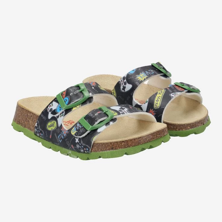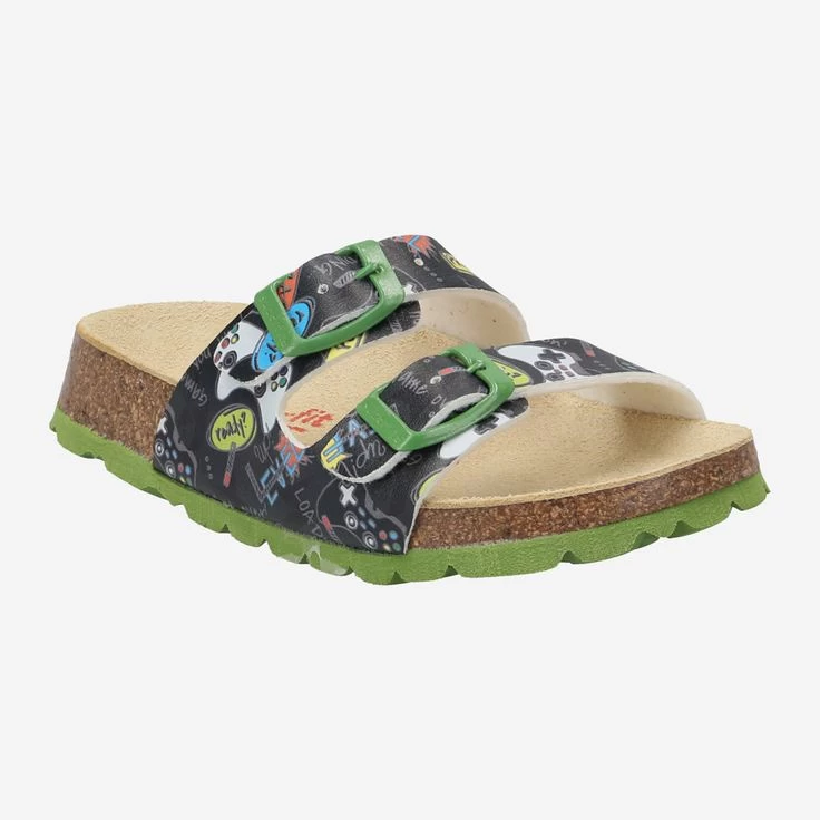 Ihr Kind flitzt auch so gerne barfuß umher? An sich ist das ja toll, doch je nach Situation benötigen die kleinen Entdeckerfüßchen Schutz. Dieses Model FUSSBETTPAN ist eine innovative 2-in-1 Lösung: Einerseits ein idealer Hausschuh, andererseits eine lässige Sommersandale! Ihr Kind kann rasch hineinschlüpfen und kalte Steinböden, Steinchen und pieksende Sachen stören nicht mehr. Superfit verarbeitet die Riemen aus pflegeleichtem Kunstleder. Die Zwischensohle aus Kork schenkt optimale Dämpfung. Für funkelnde Kinderaugen sorgt der lässige Druck zum Themenbereich „Videospiele“! Denn coole, lässige Schuhe tragen auch Kinder gern!