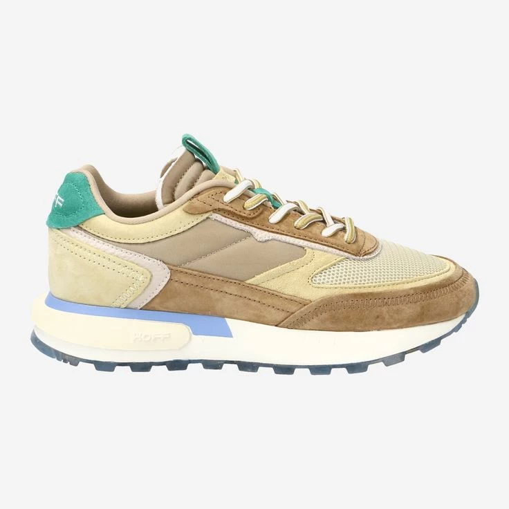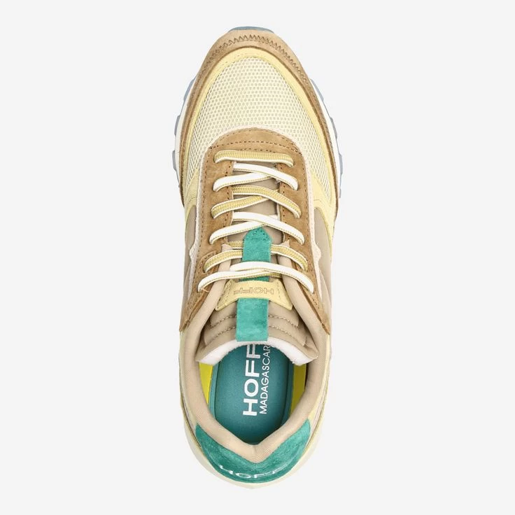 „Small groupe of people whose customs or traditions are the image of a bygone era that is still present.“ ziert – neben einiger Tribal-Symbole – den Bilddruck dieses Sneakers von Hoff. (Übersetzt: Menschengruppen, deren Sitten und Gebräuche das Bild einer vergangenen, aber immer noch präsenten Epoche darstellen.) Die Farben von „Madagascar“ sind ebenfalls an den Inselstaat in Indonesien angelehnt: Sattes Grün, geheimnisvolle, braune Gebirge und das blaue Meer laden zum träumen ein!