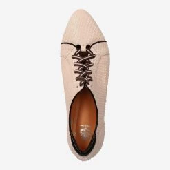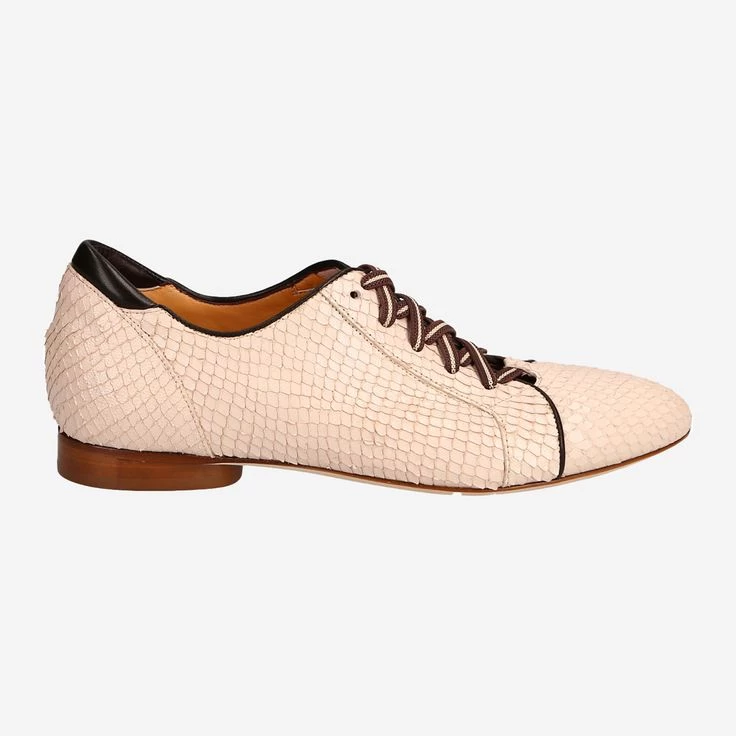 In aufregender Reptilien-Optik begeistert dieser italienische Designer-Schnürschuh alle fashionbegeisterte Ladys! Die Manufaktur Trumans gestaltet das exklusive, beige Lammnappaleder in authentischer, plastischer Schuppenstruktur. Durch das Innenfutter aus Leder genießen Sie Atmungsaktivität und einen luxuriösen Stil!