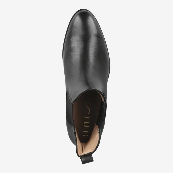 Mit diesem schwarzen Chelsea-Boot von Unisa gönnen Sie sich ein wahres Kombinations-Genie! Das Modell ist aus tief-schwarzem Glattleder gefertigt, und durch seitliche Stretcheinsätze klassisch ergänzt. Runden Sie Ihren Look damit gekonnt ab, und genießen Sie die Vielseitigkeit Ihres neuen Lieblingsschuhs!