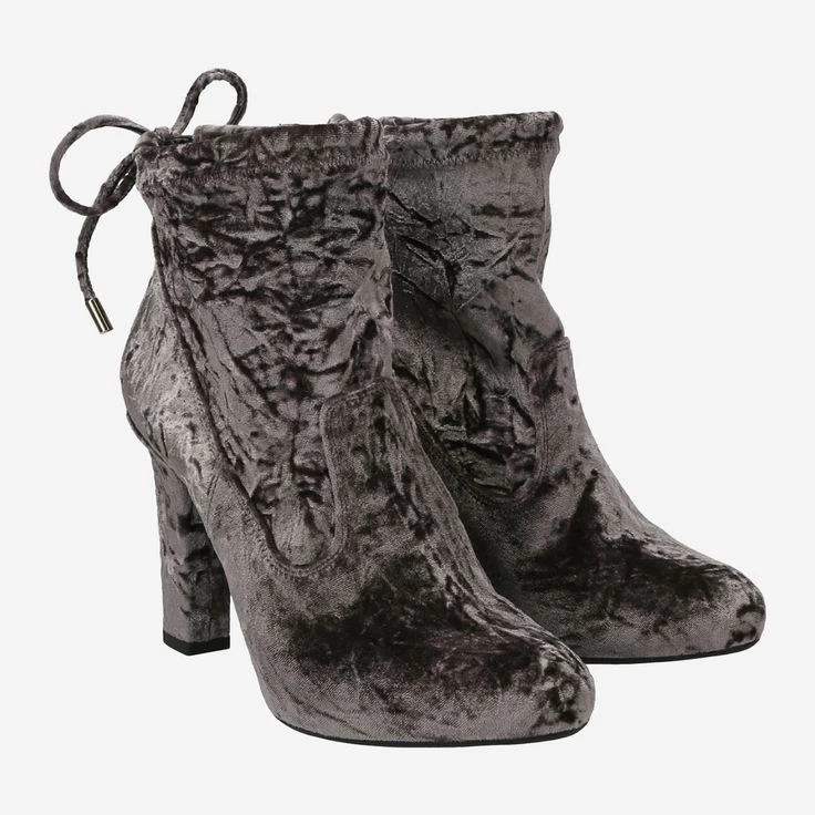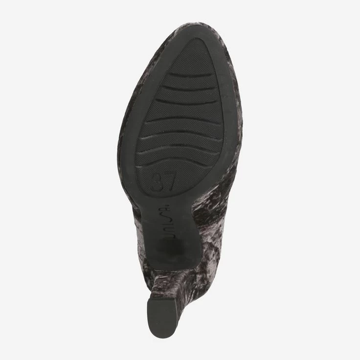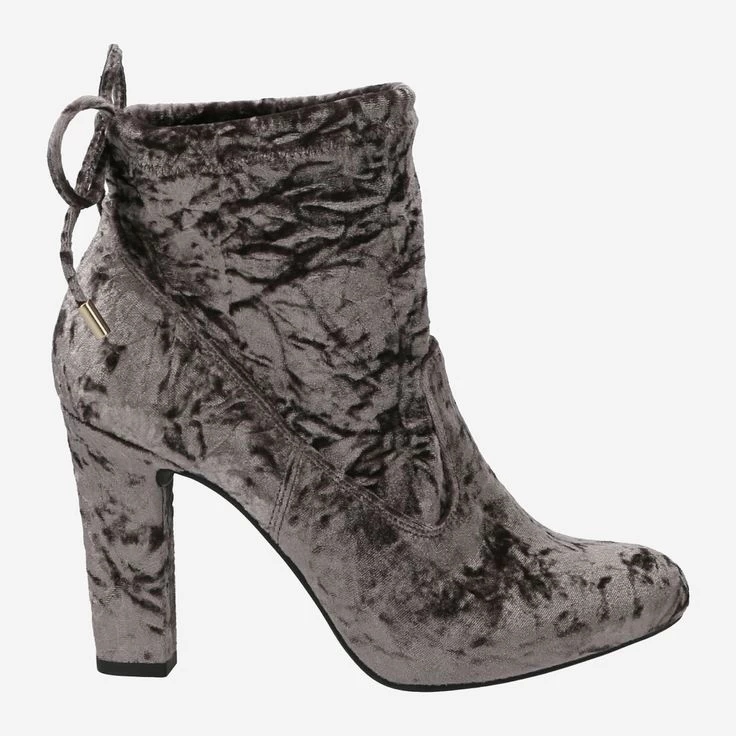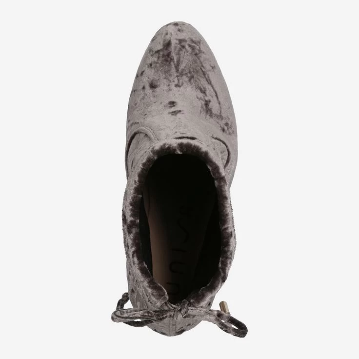 Dieser High-Heel von Unisa ist ein absoluter Blickfang. Mit seinem Oberflächenmaterial aus schimmerndem Samt macht er sich zu einem einzigartigen Stilobjekt. Das edle Grau unterstreicht dabei den coolen Look, perfekt kombiniert mit einem Samtband am rückseitigen Schaft, welches das gradlinige Design auf weibliche Art auflockert. Durch seine Absatzhöhe von 10 cm wirkt er ausdrucksstark, feminin und eignet sich perfekt für besondere Anlässe. Die Schafthöhe beträgt 13 cm und sorgt für ein optisch abgerundetes Design.